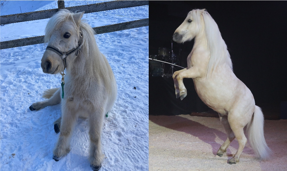 Er begleitet mich seit er 9 Monate alt ist. Sämi ist ein kleines Schlitzohr. Er ist der beste Freund von Calypso. Sie spielen viel zusammen. Sämi ist in Freiheitsdressur und Zirkuslektionen ausgebildet. Er wird nicht geritten, liebt aber Spaziergänge und auch Bodenarbeitsparcours. Er braucht beim spazieren eine klare Führung. Er geniesst es geputzt zu werden. Er lebt bei mir zu Hause im Offenstall.